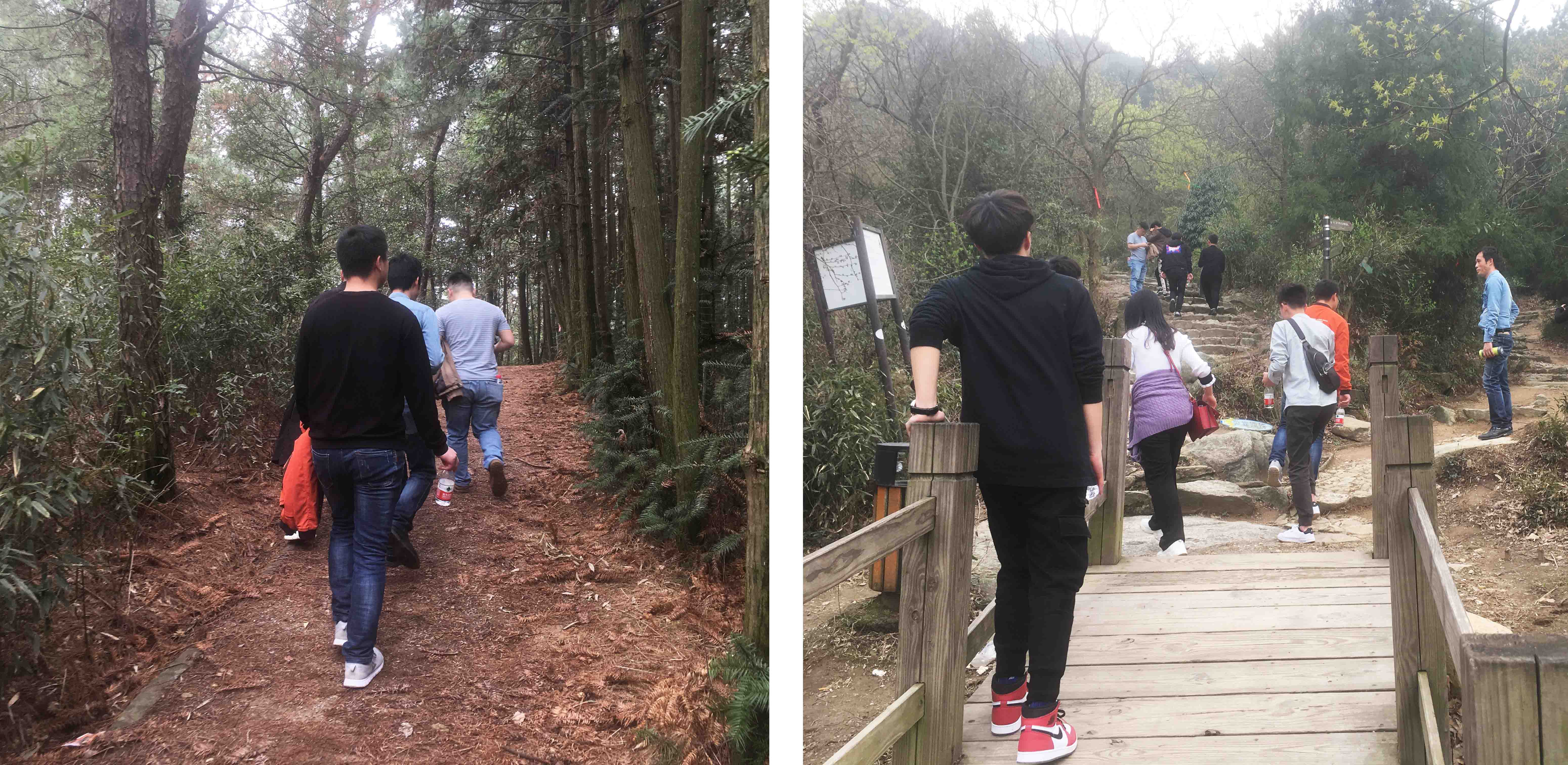 午餐結(jié)束小憩修整后,大家坐車到達(dá)栲栳山腳下,開啟登山模式。在登山過程中,大家飽覽沿途自然風(fēng)光;遇到陡坡互相鼓勵(lì),向山頂前行。經(jīng)過艱難跋涉,大家先后達(dá)到山頂,忘卻疲憊,感受大自然的味道,感受大家庭的協(xié)助。